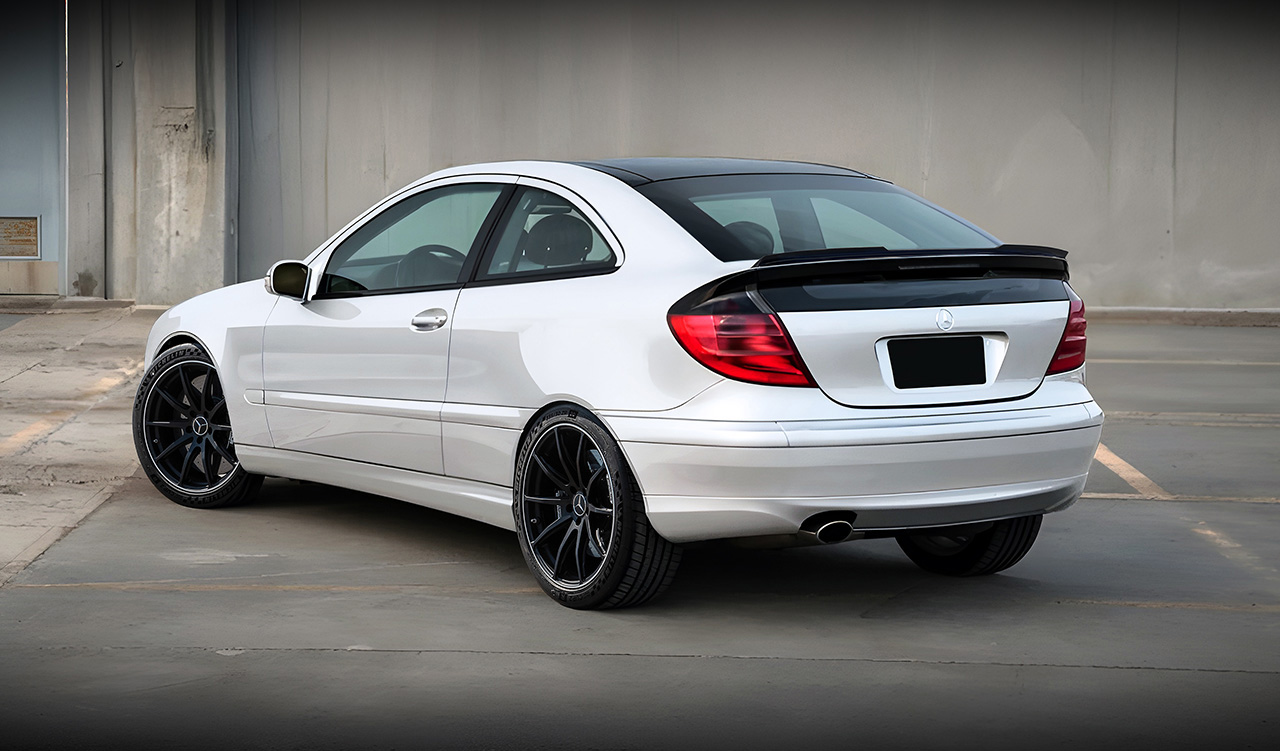 Rear spoiler. Gloss black, ABS. Suitable for Mercedes-Benz SportCoupé CL203 2000–2008
