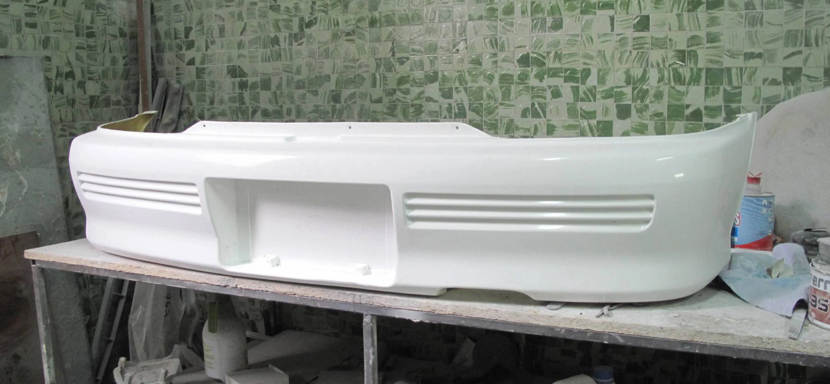 E30 M3 rear bumper wide. The product is made of fiberglass and requires some preparation as well as painting!