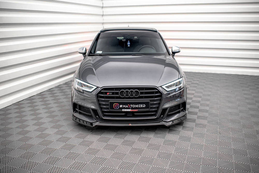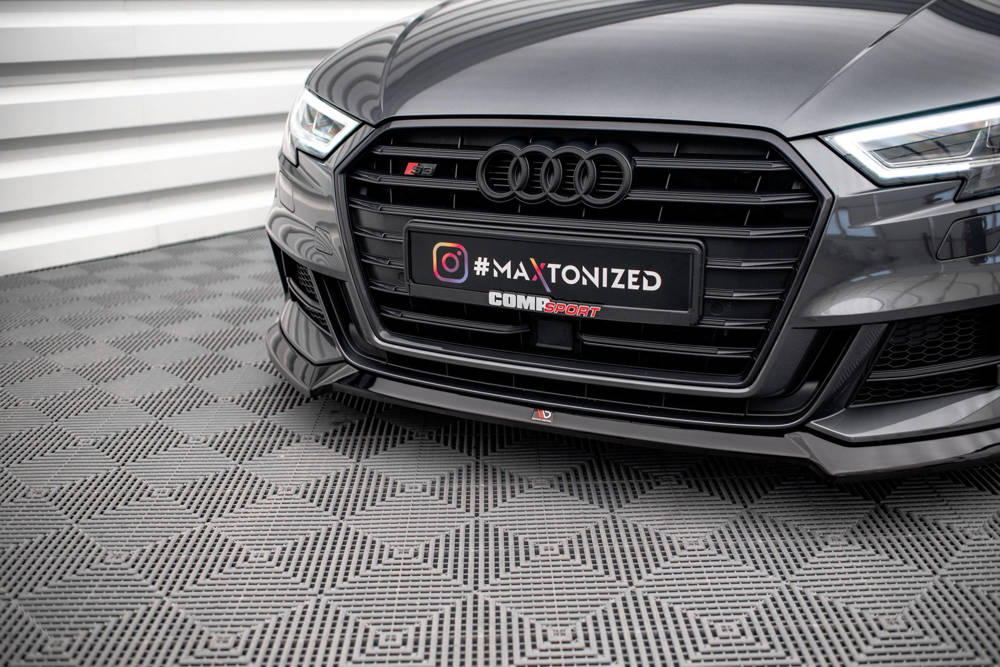 Front splitter V.3. Gloss black, ABS. Fits Audi S3 Sportback 8V Facelift 2016 - 2019