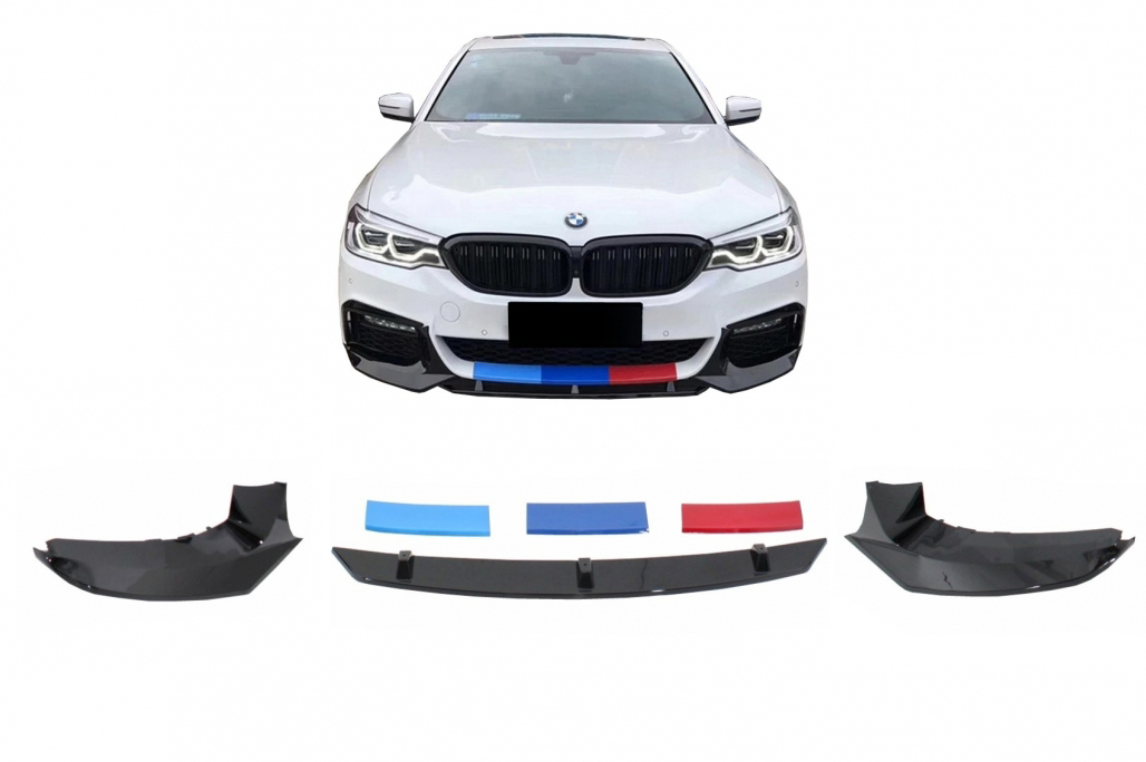 ///M colored front bumper add on. Made of ABS plastic and painted gloss black color. Suitable for 2017- BMW G30/G31 M-Sport.