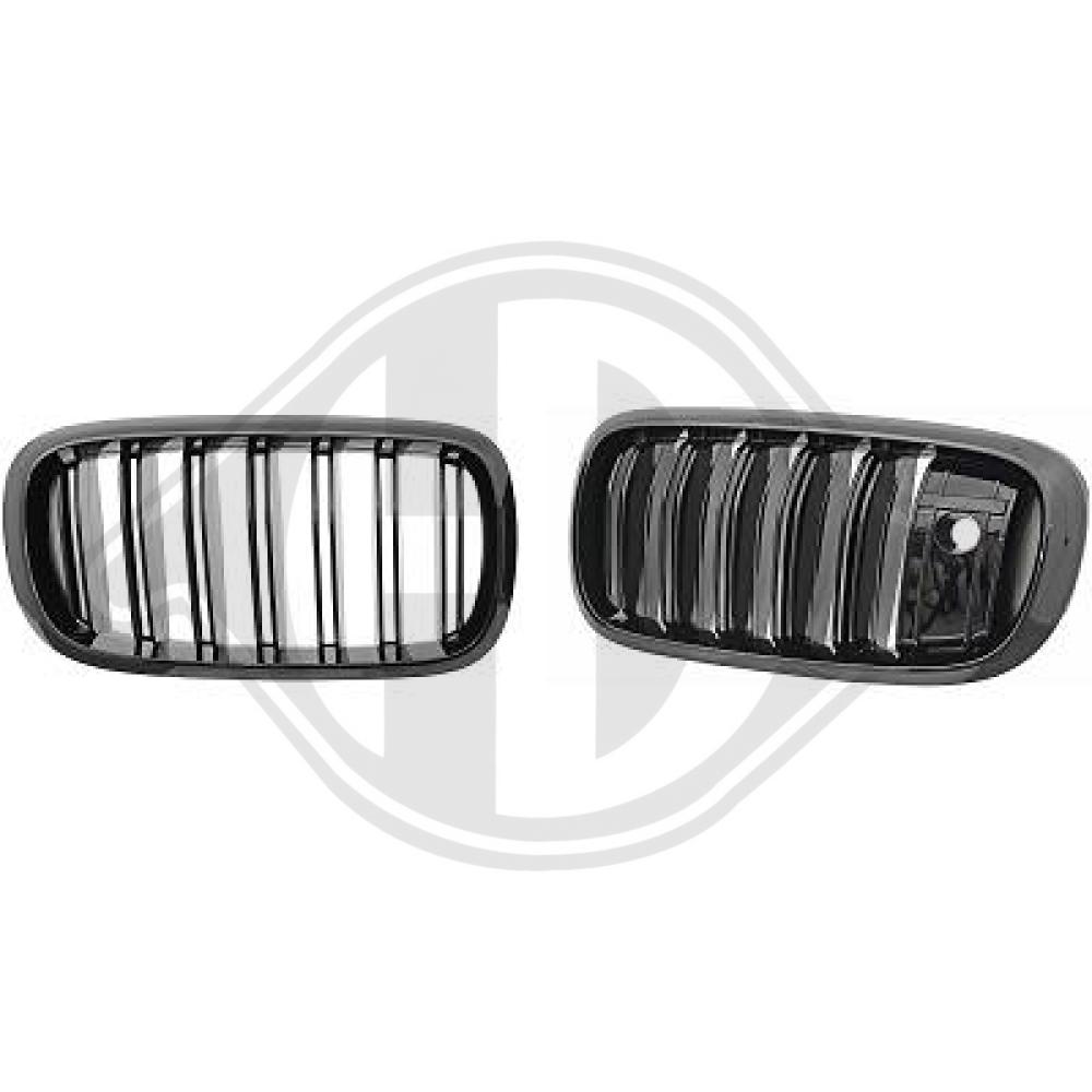 Double-slat kidney grilles. Gloss black. Fits 2014–2017 BMW F45/46 models.