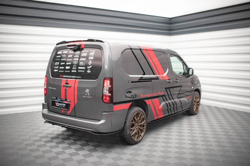 Rear central splitter with vertical bars. Gloss black, ABS. Fits Peugeot Partner Mk3 2018 -