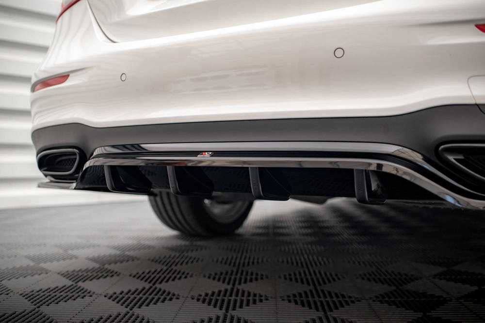 Central rear splitter with vertical bars V.1. Gloss black, ABS. Fits Mercedes A 35 AMG Sedan V177 2018 -