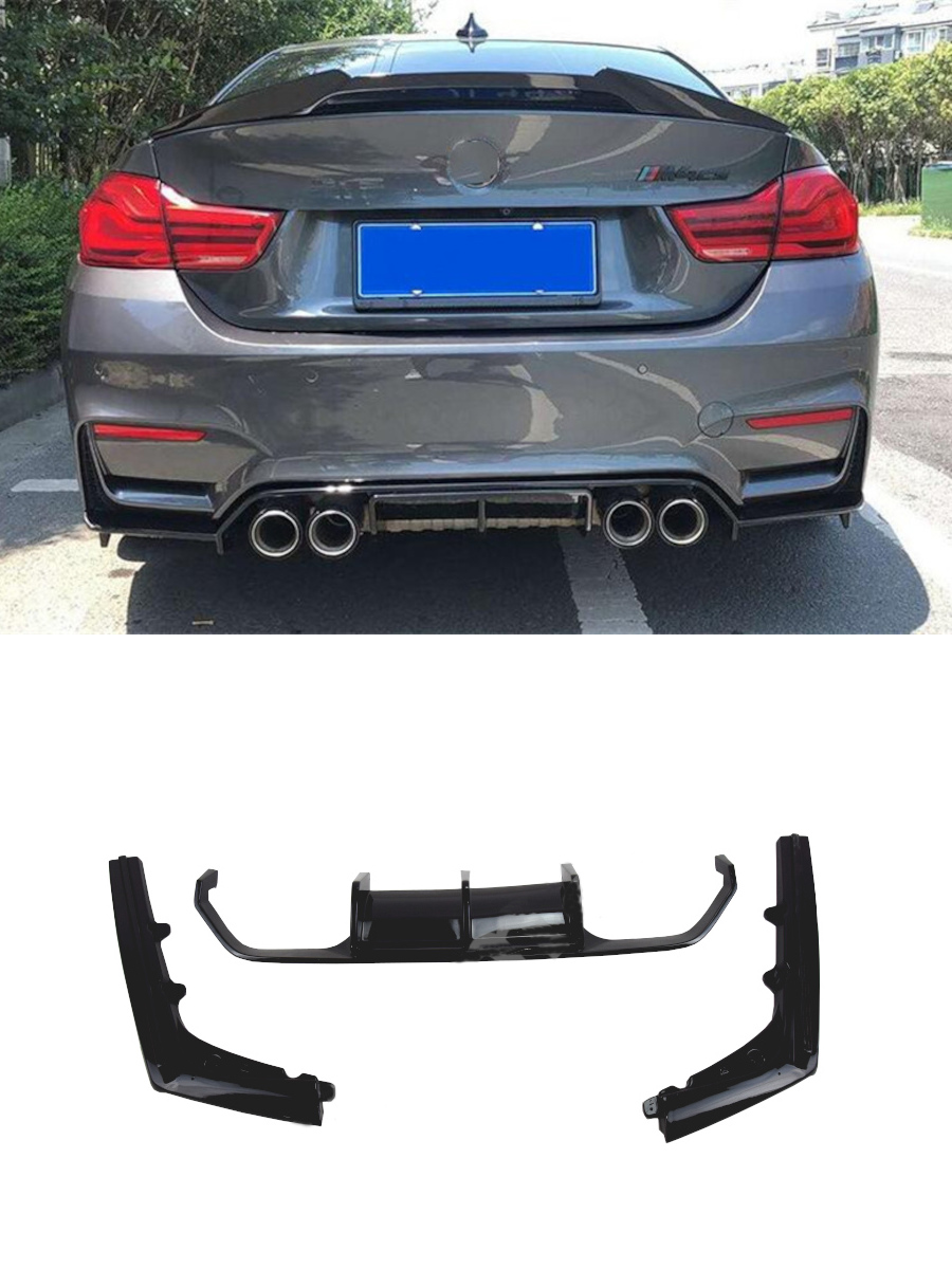 Rear diffuser. Made of ABS plastic and painted glossy black. Suitable for BMW M3/M4 F80/F82 2013-2019. Delivery time 2-3 weeks. Please contact us before ordering.