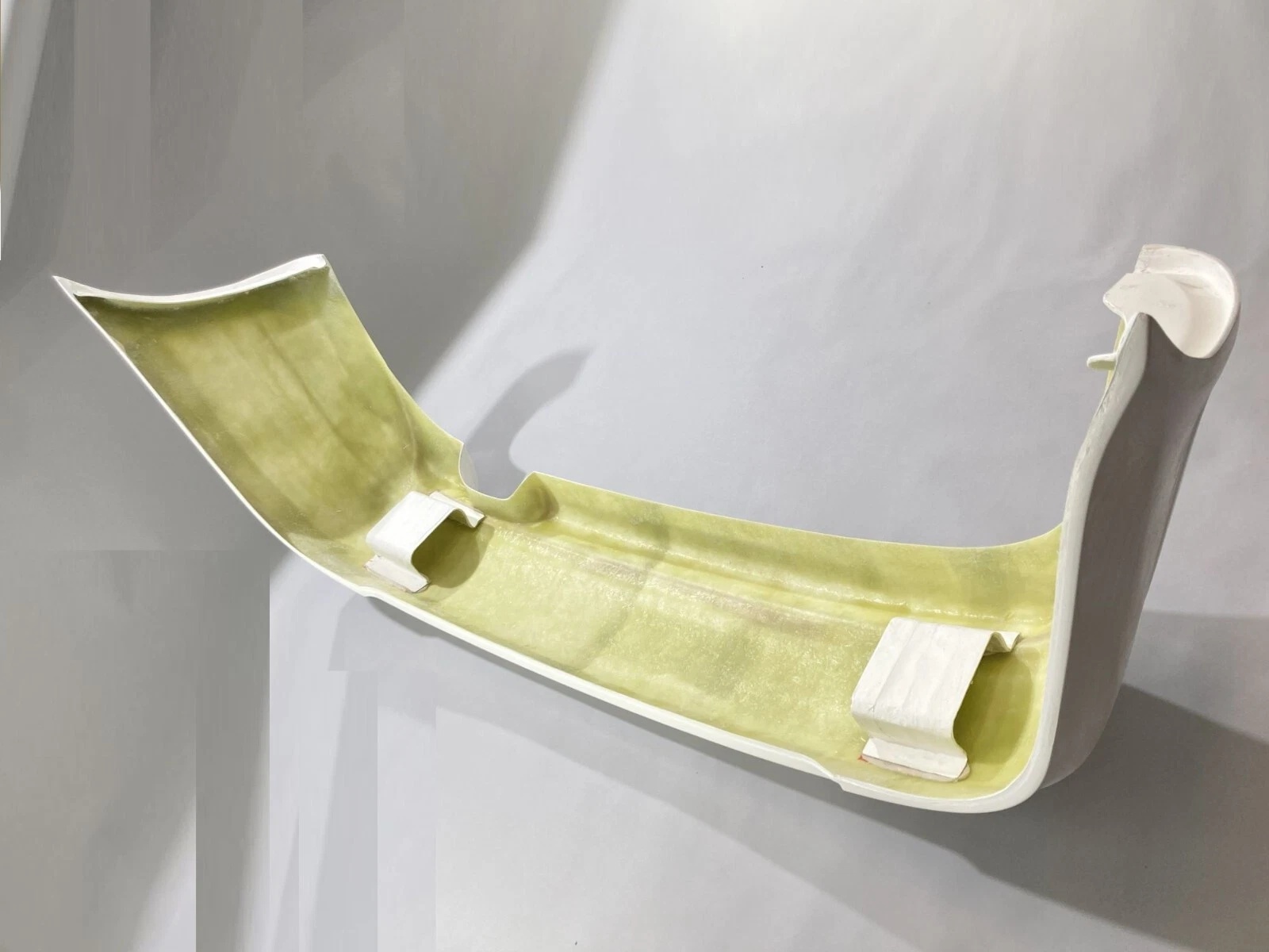 BMW E46 M3 CSL LOOK front bumper. Made of fiberglass and needs painting before installation.