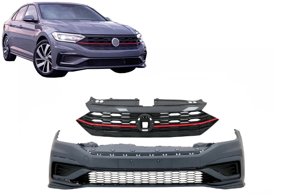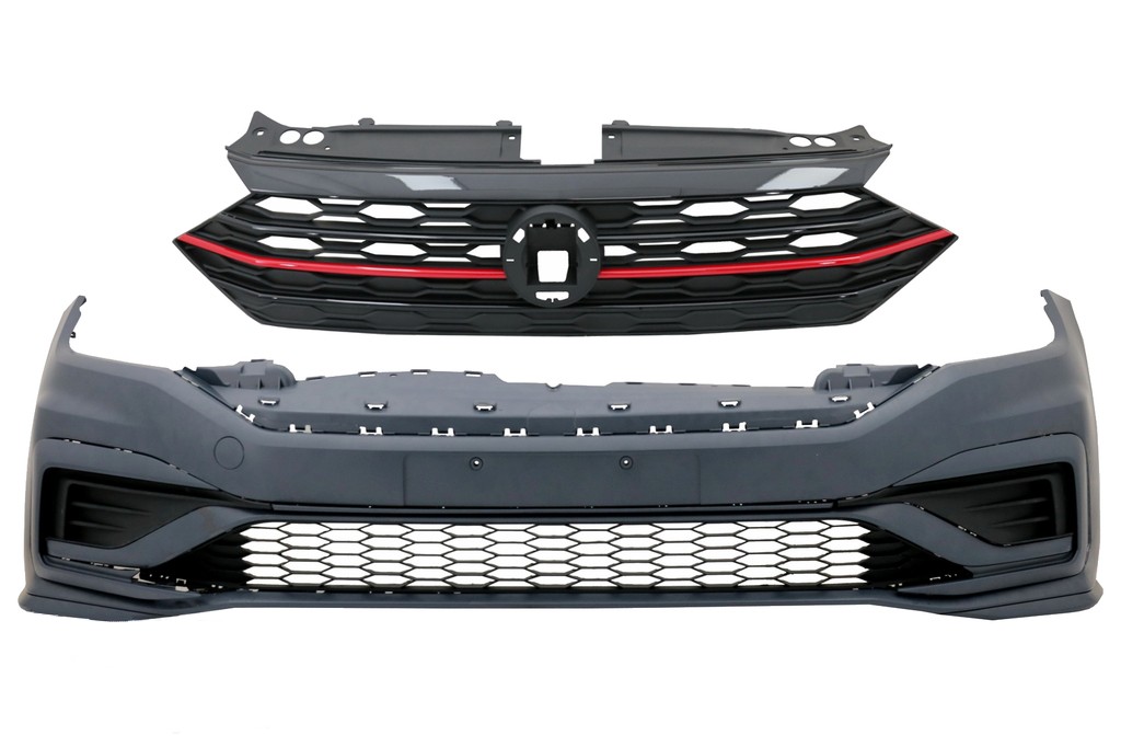 Contains front bumper and grille. ABS plastic. Fits VW Jetta MK7 (2019-2021)