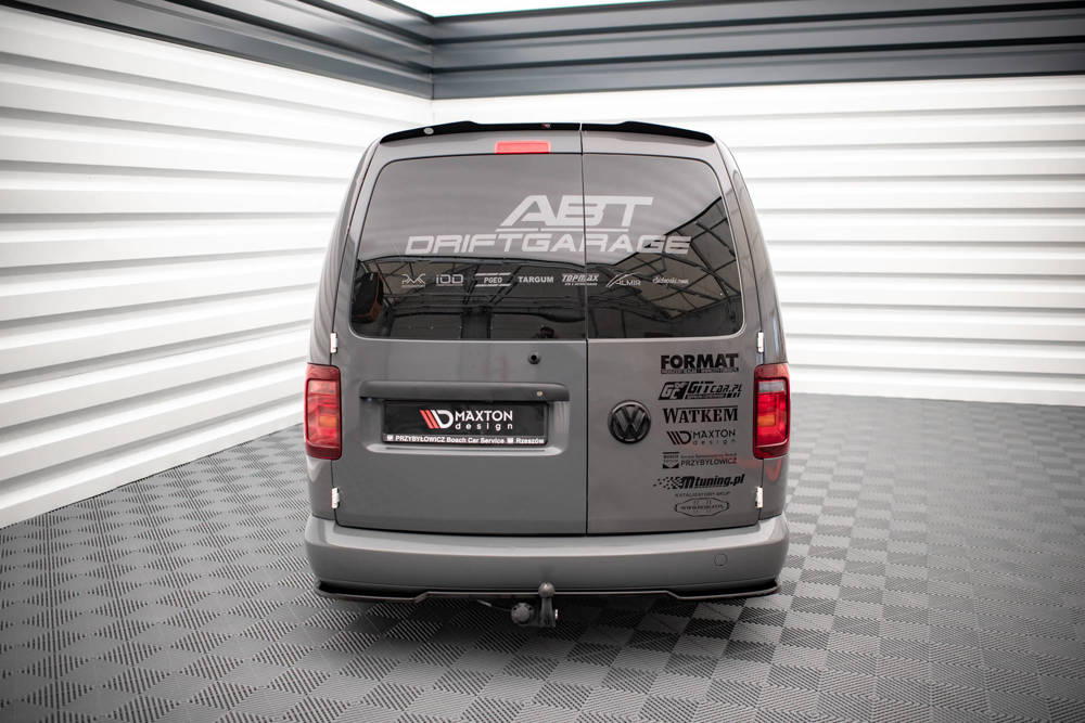 Rear central splitter. Gloss black, ABS. Fits Volkswagen Caddy Long Mk3 Facelift 2010 - 2015