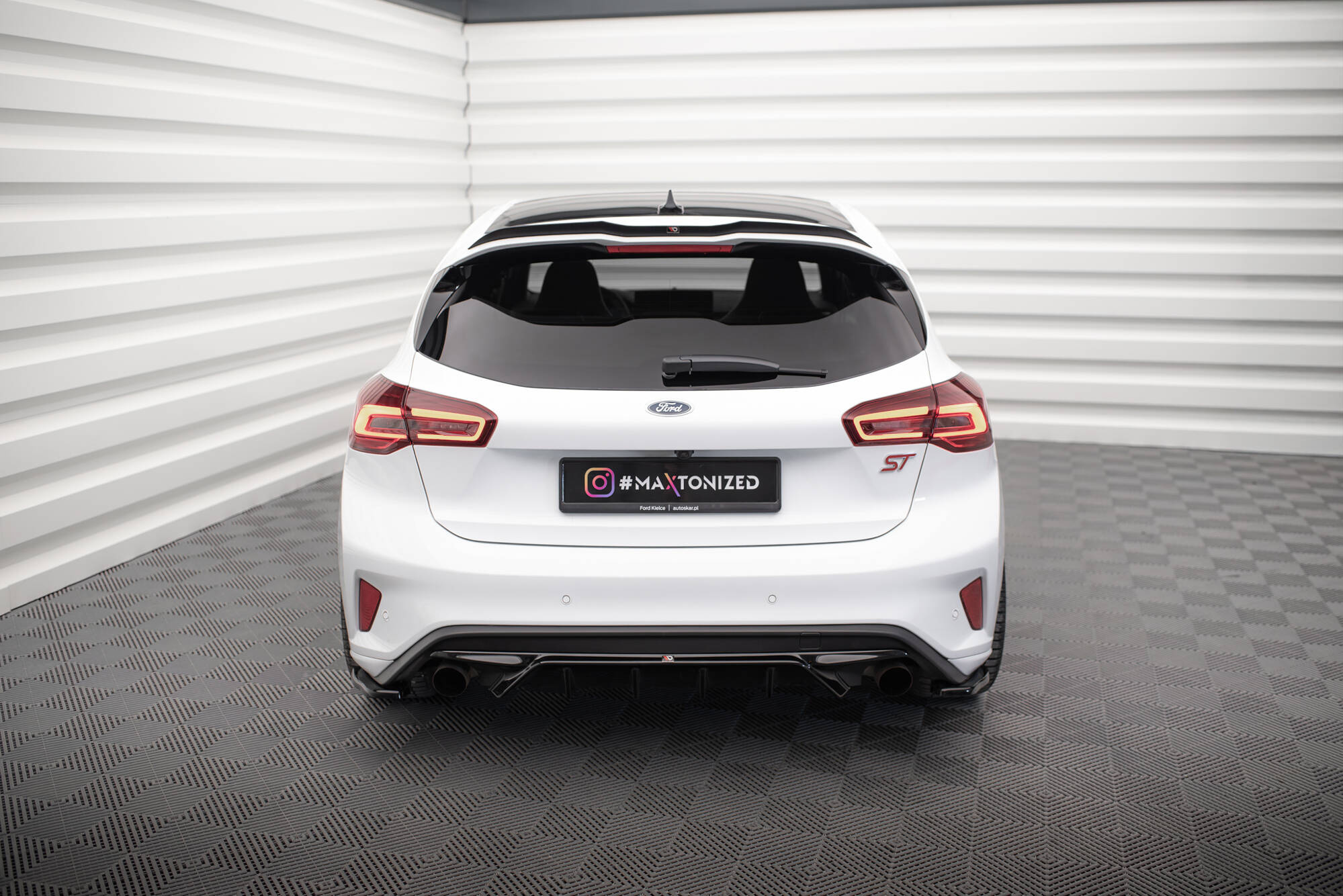 Rear valance V.2. Glossy black, ABS plastic. Suitable for Ford Focus Hatchback ST Mk4 2019 - 2021 / Ford Focus Hatchback ST Mk4 Facelift 2021 -