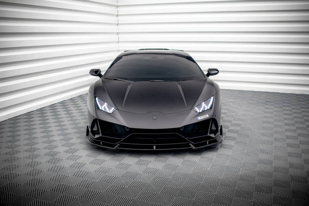 Front splitter, gloss black, ABS. Fits Lamborghini Huracan EVO 2020 - . Possible to order CARBON LOOK front splitter for 454.- €.