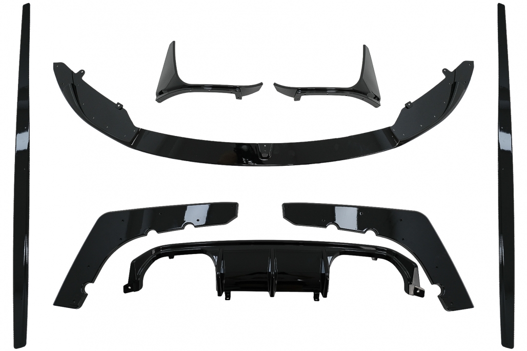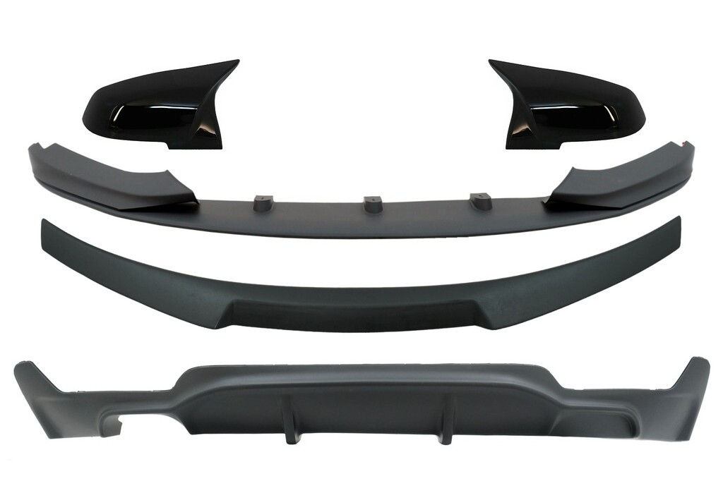 Set contains front add-on, rear diffuser, rear trunk spoiler and mirror covers which are painted glossy black. Other products are matte black and made of ABS plastic. Fits BMW 4 Series Coupe F32 M-Tech/M-Paket/M-Sport (2013-2019)