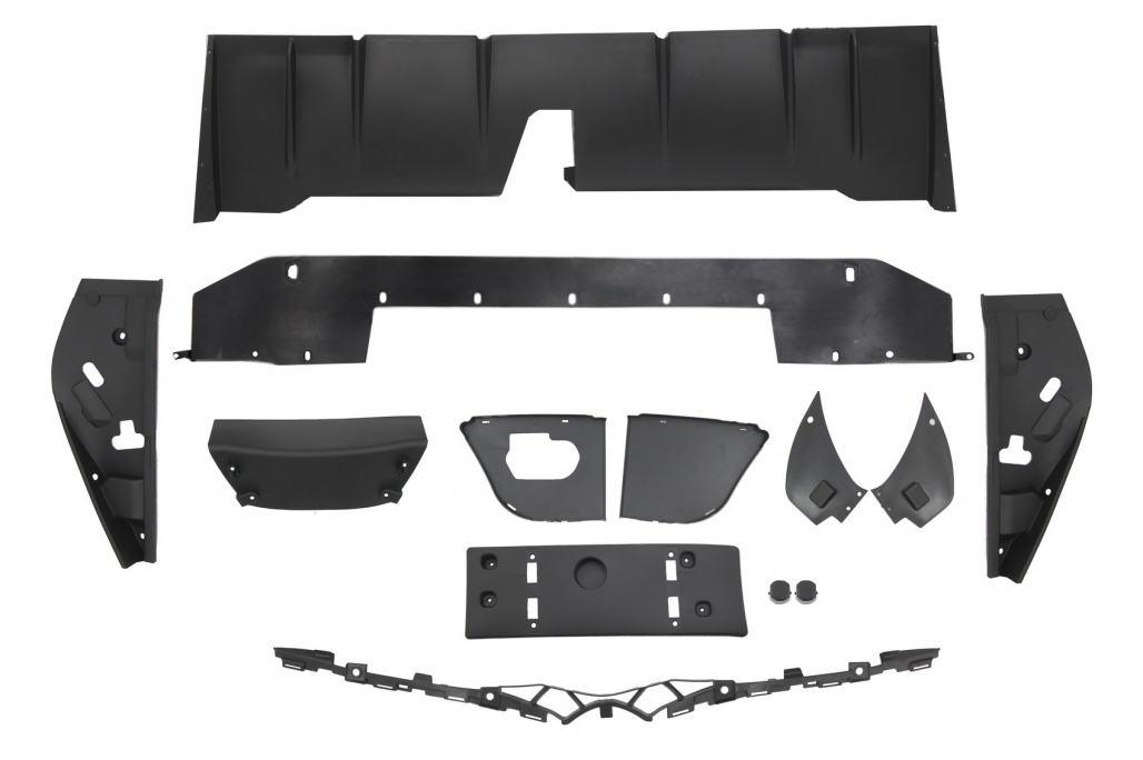 Set contains: Front Bumper, front Bumper Lower Spoiler Extension, front Bumper Upper Spoiler Extension, front Fender Flares , Rear Fender Flares , Front bumper side extensions , Rear bumper side extensions , Front Door Panels (add-on) , Rear Door Panels (add-on) , Lower side extensions. Fits Mercedes G-Class W463 (1989-2018). Not suitable for genuine AMG models.